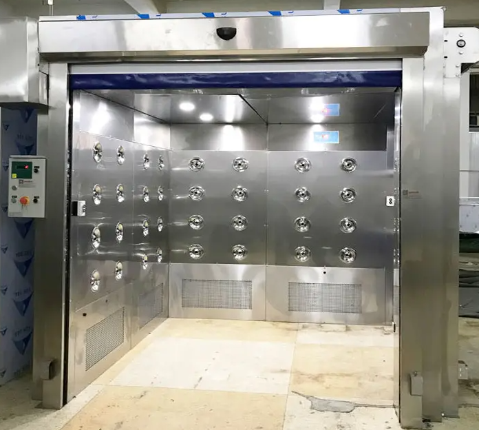 貨淋室是潔凈廠房和潔凈室的輔助設(shè)備,用于除去進入凈化廠房的物品表面附著的塵埃,同時貨淋室也起到氣閘的作用,防止未經(jīng)凈化的空氣進入潔凈區(qū)域,是進行物品凈化和防止外空氣污染潔凈區(qū)的有效設(shè)備。